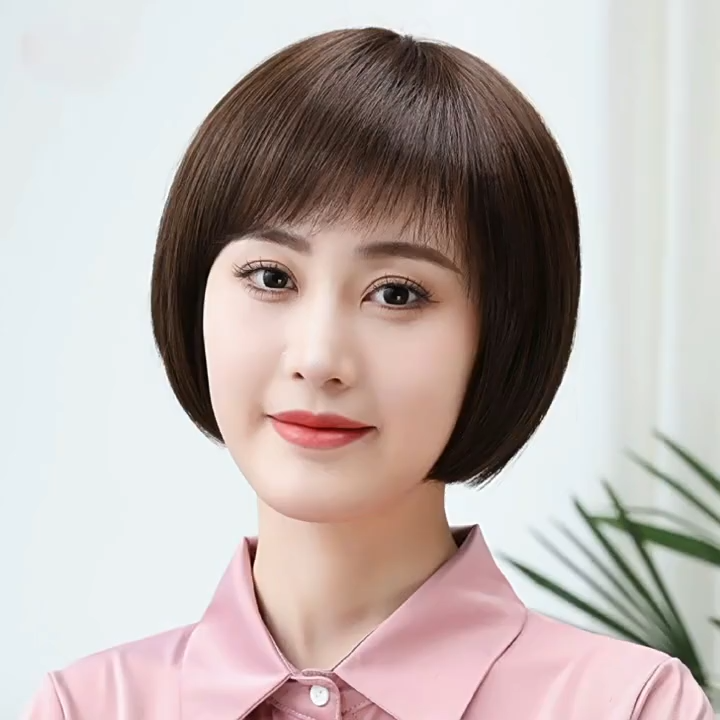 假发女短发直发中老年真发波波头送妈妈自然真人发丝批发遮盖白发