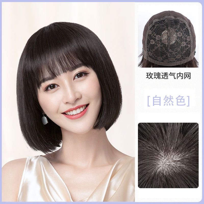 波波头假发真人发丝女短直发全头套网红自然头顶遮白发整顶假发套